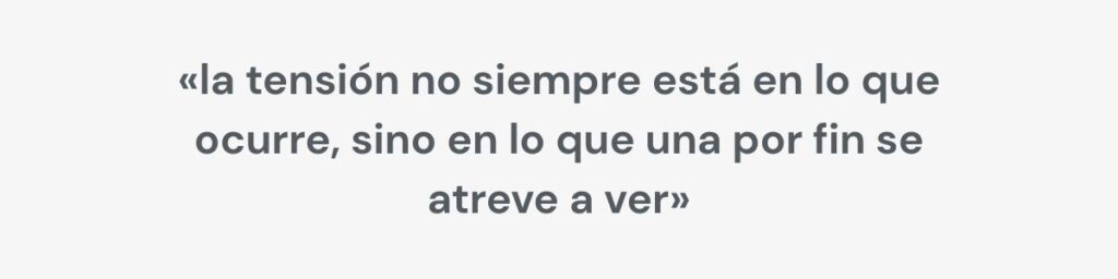 Me interesaba más contar el autoengaño previo: ese territorio aparentemente tranquilo donde una cree que «todo está bien» porque funciona, porque aguanta, porque cumple. Esa estabilidad, en realidad, era una arquitectura construida para sostener lo insostenible: una forma de vivir sin mirar de frente lo que dolía. En la novela, la grieta no llega como un desastre cinematográfico, sino como lo que suele ocurrir en la vida real: una pequeña fisura que, de pronto, te revela que llevas años sosteniendo un personaje.