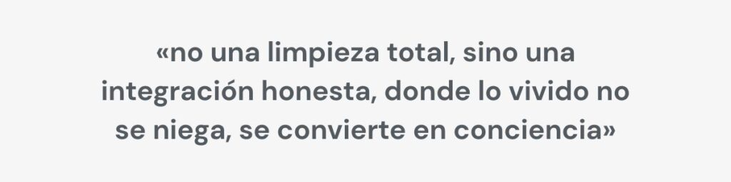 Lo evité porque no quería escribir una historia de «final feliz» empaquetado. Este libro nace de un lugar muy interno y, precisamente por eso, no podía traicionarlo con una conclusión perfecta. La vida real no funciona así: la luz no borra la sombra, y la sombra no invalida la luz. Lo que cambia, cuando hay un despertar, no es que desaparezca el dolor, sino la relación que tienes con él: deja de gobernarte en secreto.