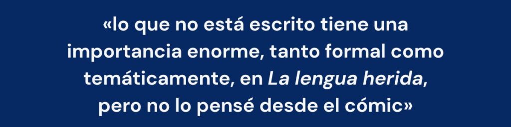 En La lengua herida hay un peso importante del silencio. En el cómic, el silencio se dibuja en las «calles» (el espacio entre viñetas). ¿Cómo trasladaste ese concepto de «lo que no se dice» a la novela?