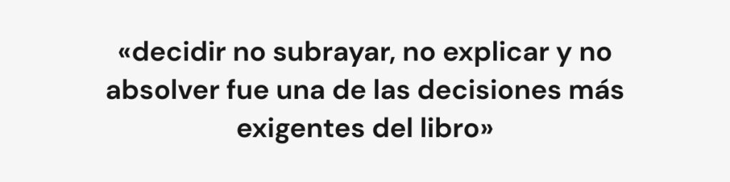 Sí: resistir la tentación de juzgar. Especialmente en las escenas de violencia o de colaboración con el poder. Decidir no subrayar, no explicar y no absolver fue una de las decisiones más exigentes del libro.